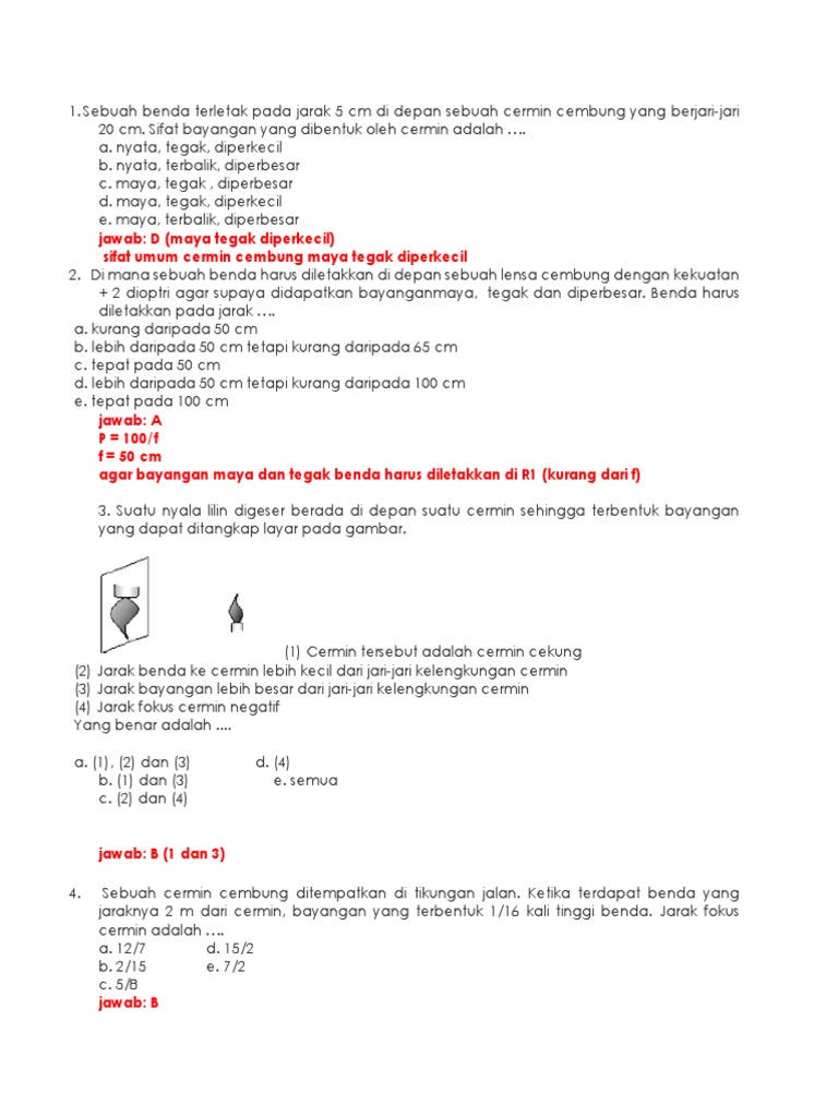 Soal Soal Latihan Fisika Tentang Cermin Cembung Harianja