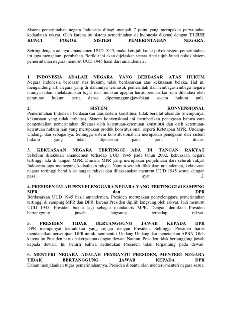 Sumber : brainly.co.id Bentuk Pemerintahan Indonesia Sistem Pemerintahan Indonesia