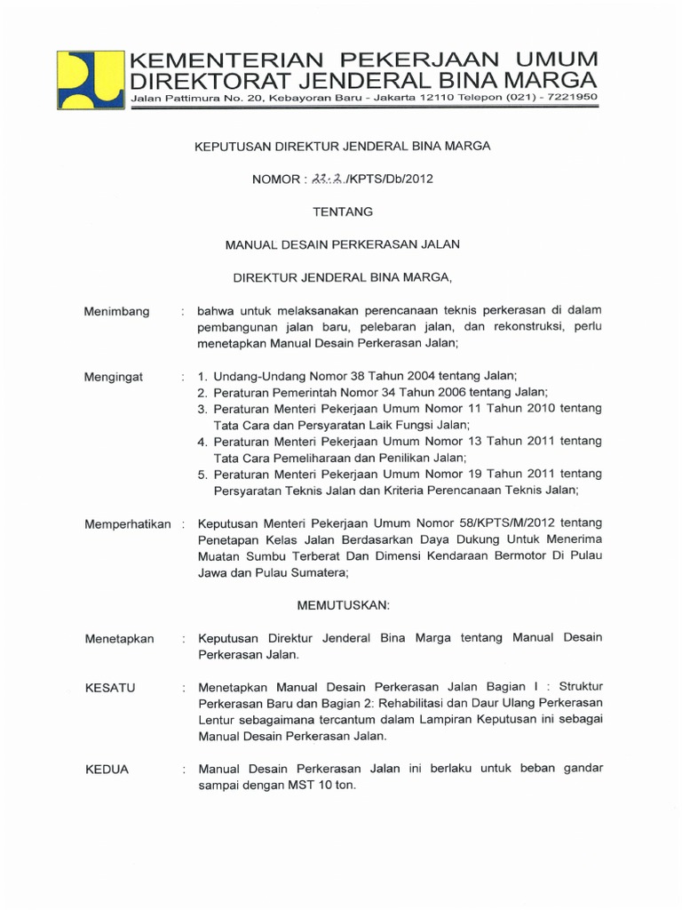 Pp No 34 Tahun 2006 Tentang Jalan. Kepdirjenbm222kptsdb2012pdf