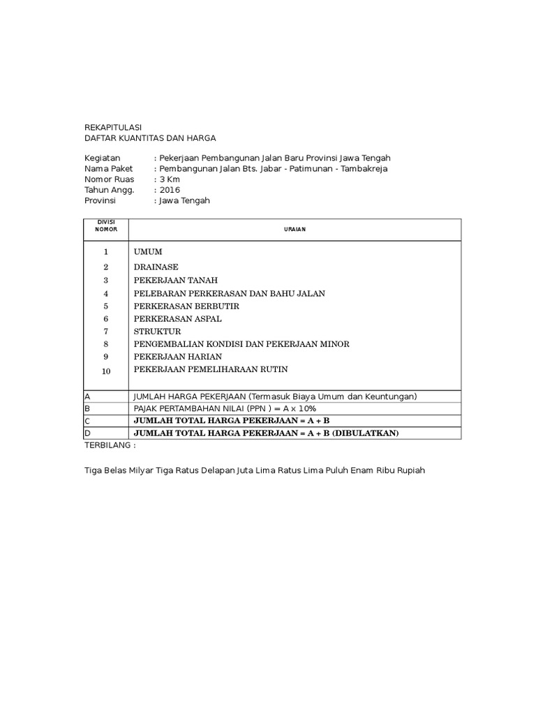 Biaya Pembangunan Jalan Aspal Per Km. Rab Pembangunan Jalan