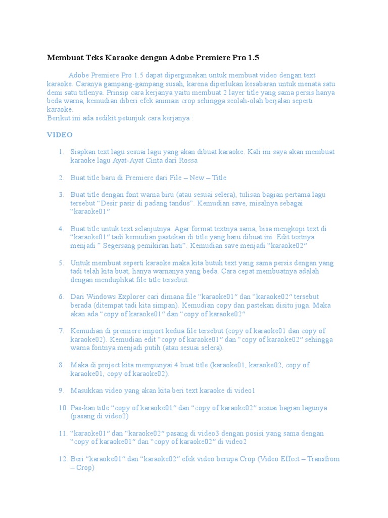 Sumber : whoismatt.com Tutorial Text Berjalan Pada Lirik Video Lagu Karaoke Menggunakan Adobe Premiere Pro Cs6