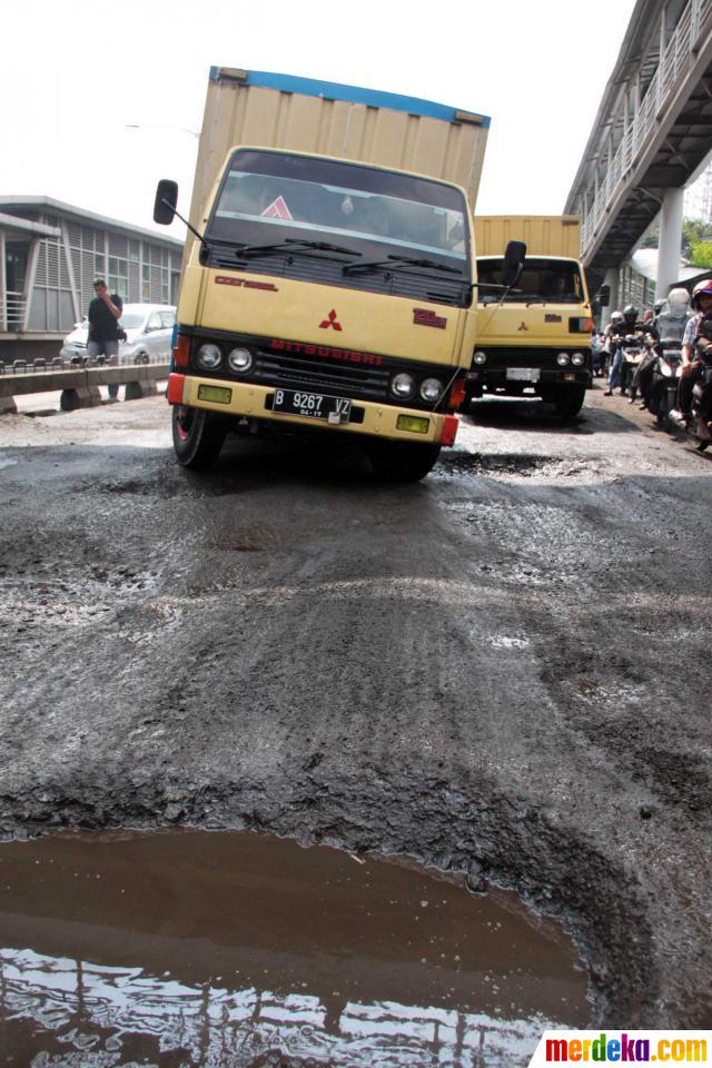 Sumber : megapolitan.okezone.com Foto Jalan Berlubang Di Daan Mogot Arus Kendaraan Macet
