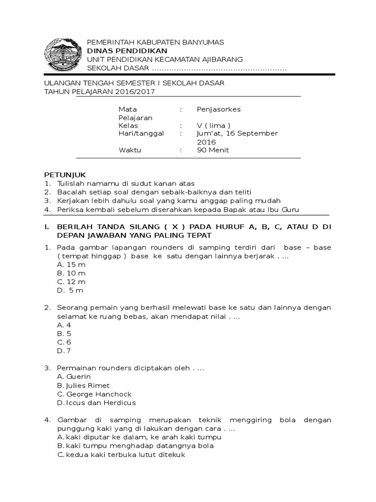 Sumber : dosenpendidikan.co.id Soal Usbn Pjok Smk Gunung Nagara
