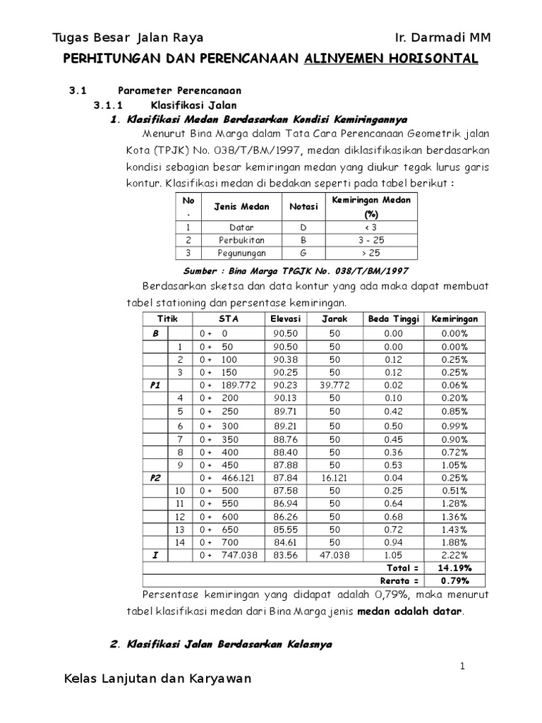 Klasifikasi Jalan Raya Menurut Bina Marga. Laporan Tugas Geometrik Jalandocx