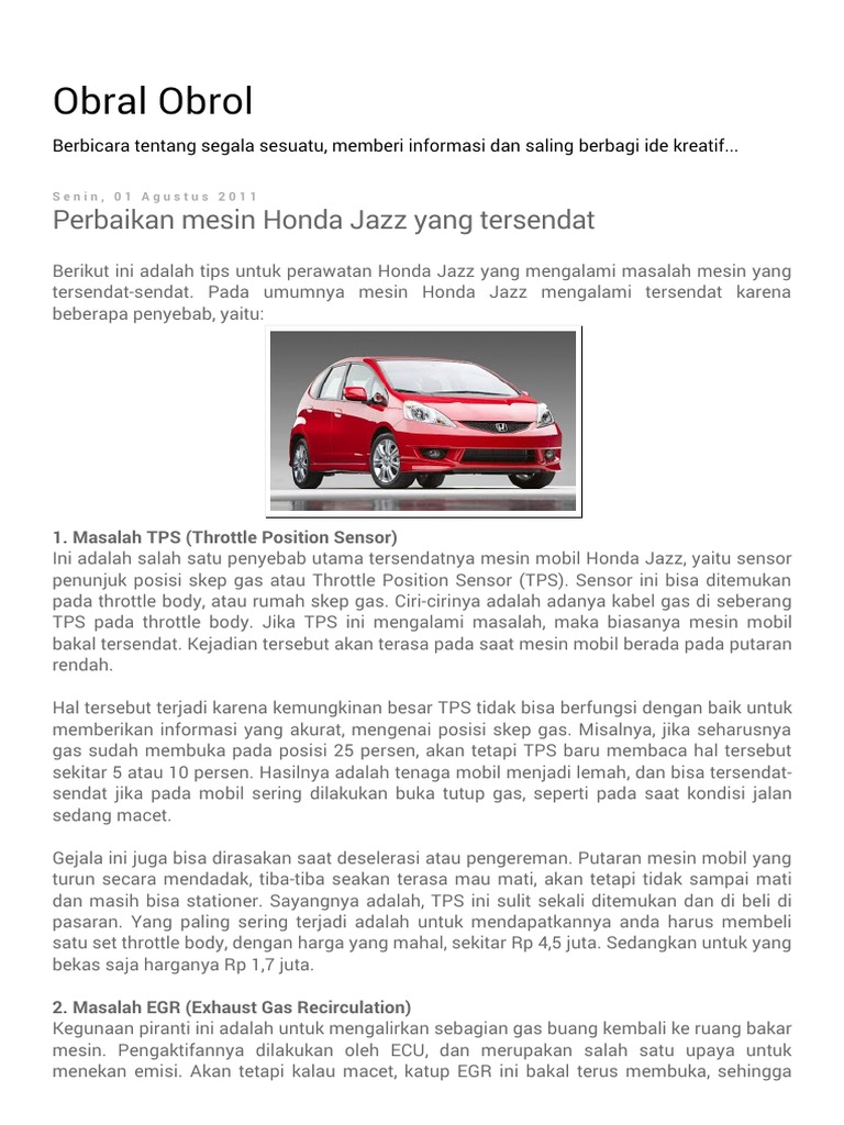 Sumber : otomobilmotor.com Perbaikan Mesin Honda Jazz Yang Tersendat Obral Obrol