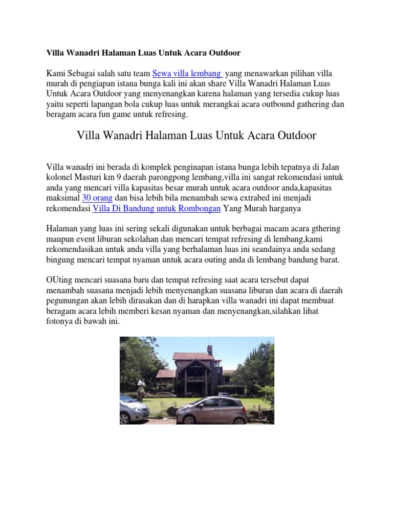 Villa Di Lembang Jalan Kolonel Masturi. Villa Wanadri Halaman Luas Untuk Acara Outdoor